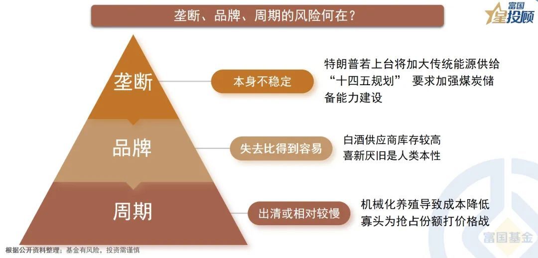 尽管垄断加剧、品牌增强、周期出清有助于竞争格局改善,但其背后也面临各自的挑战。比如,原油的格局取决于政策,如果特朗普上台加强传统能源,可能导致垄断格局的破裂。品牌力虽然有很强大的粘性,但仍面临潜在对手的挑战,不容躺平犯错。周期出清则可能由于寡头的价格战而被拉长,比如本轮猪周期就迟迟不来。