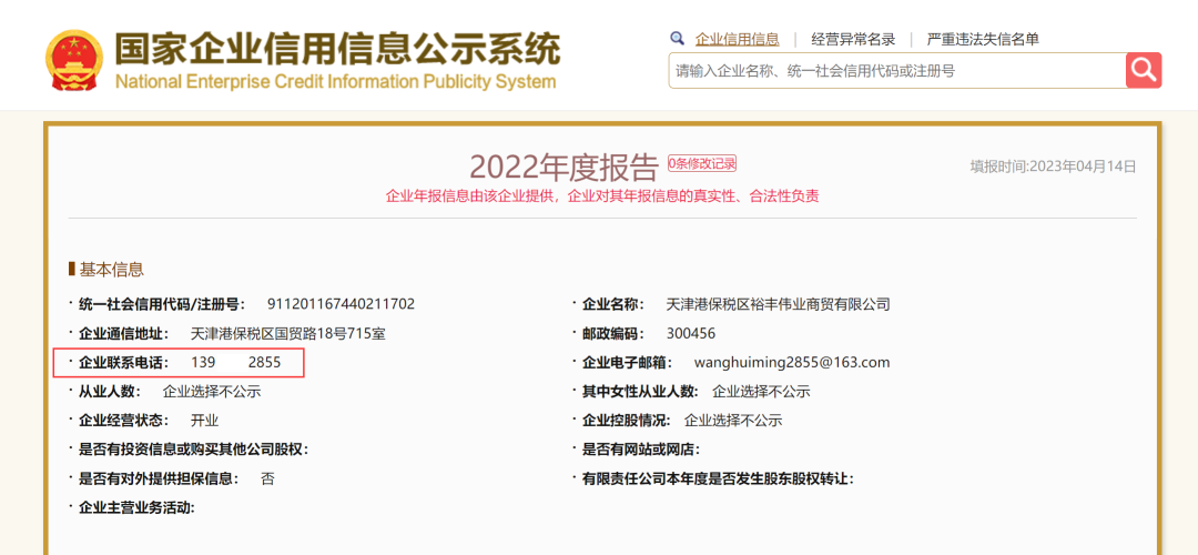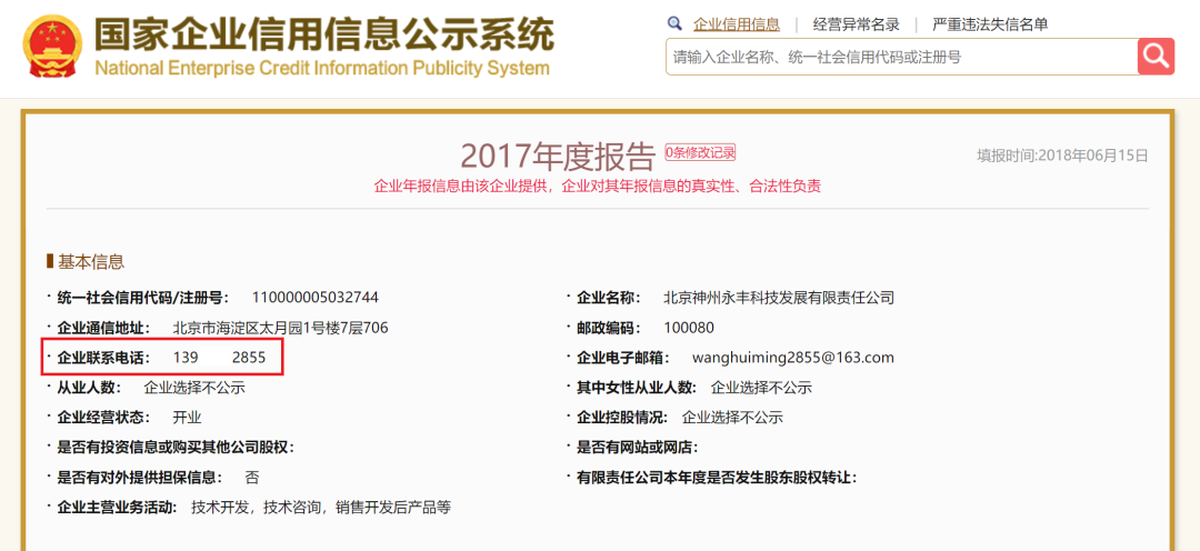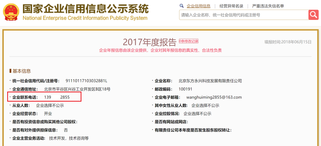 记者了解到,天眼查平台的企业联系电话主要来源是国家企业信用信息公示系统中的年报,或者企业自主提交天眼查平台进行信息修订。北京泰跃在天眼查平台显示的“139XXXX2166”联系电话,与其在国家企业信用信息公示系统中的年报联系电话(为座机电话)并不一致。而该电话是否是北京泰跃自主修改,记者未能直接证实。