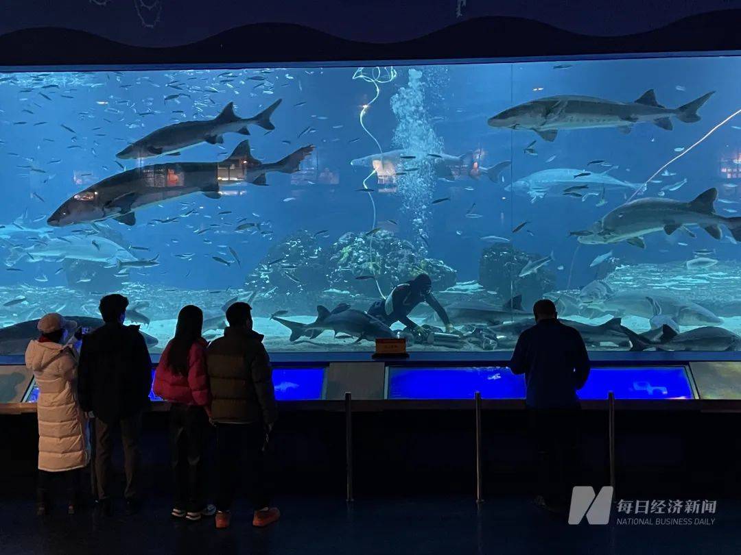 北京海洋馆,游客观赏中华鲟喂食秀。图片来源:每经记者 杨煜 摄