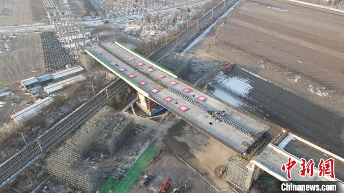 国道208线新建工程上跨南同蒲铁路转体桥转体完成。中铁六局太原公司供图