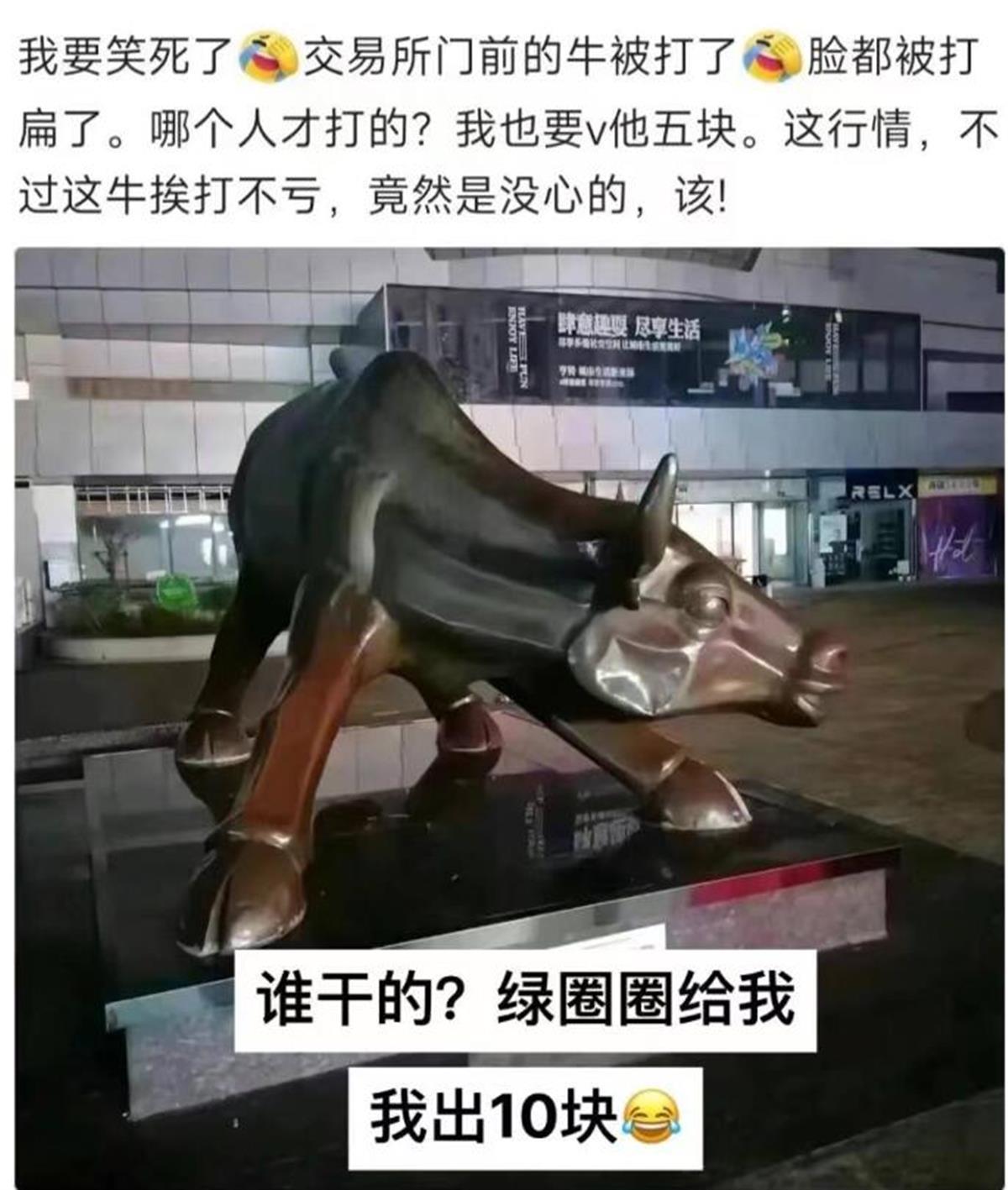 1月10日,极目新闻记者就此事致电深交所,工作人员表示,没有听说“牛雕塑”被砸的情况。