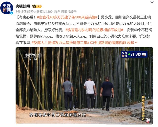 1月7日,“年度反腐大片”《持续发力 纵深推进》播出第二集《政治监督保障》,其中,披露了四川省宜宾市兴文县僰王山镇原副镇长吴小龙案。
