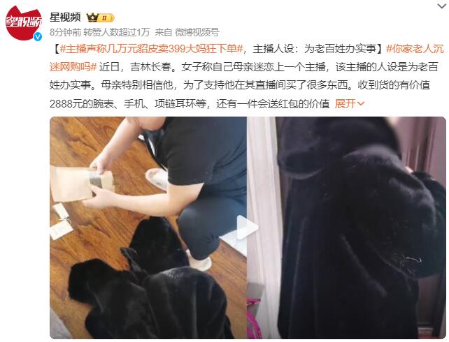 近日,吉林长春。女子称自己母亲迷恋上一个主播,该主播的人设是为老百姓办实事。母亲特别相信他,为了支持他在其直播间买了很多东西。收到货的有价值2888元的腕表、手机、项链耳环等,还有一件会送红包的价值好几万仅售399的貂皮大衣。女子表示十分无奈,母亲不信自己就信主播,不让买的东西也会悄悄下单。女子称大衣还行但母亲要退货,理由是没有买时主播说的红包。