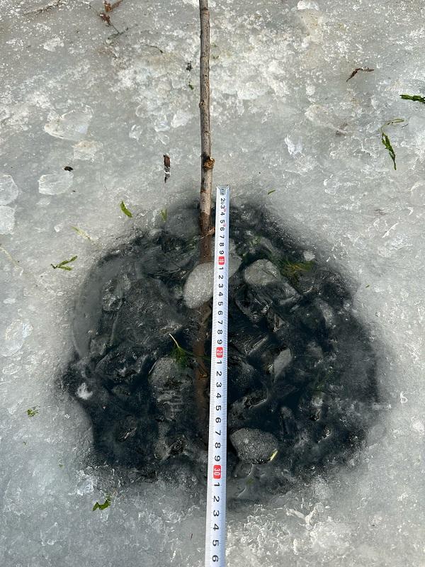 在东坝千亩湖公园,被凿开的冰窟窿直径超过30厘米