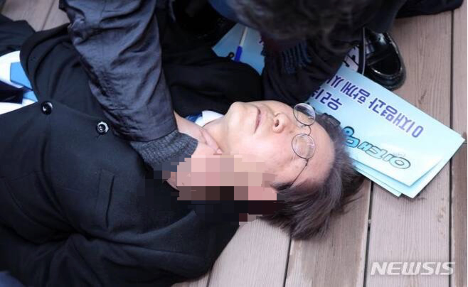 ▲韩媒称,李在明1月2日遇袭后“流血倒地”。韩媒报道配图