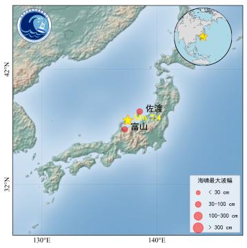 记者从自然资源部海啸预警中心获悉,根据全球海啸监测数据显示,此次地震在震源附近引发了海啸。截至2024年1月1日19点30分(北京时间),佐渡(38.32°N,138.52°E)监测到30.0厘米的海啸波、富山(36.76°N,137.22°E)监测到81.0厘米的海啸波。