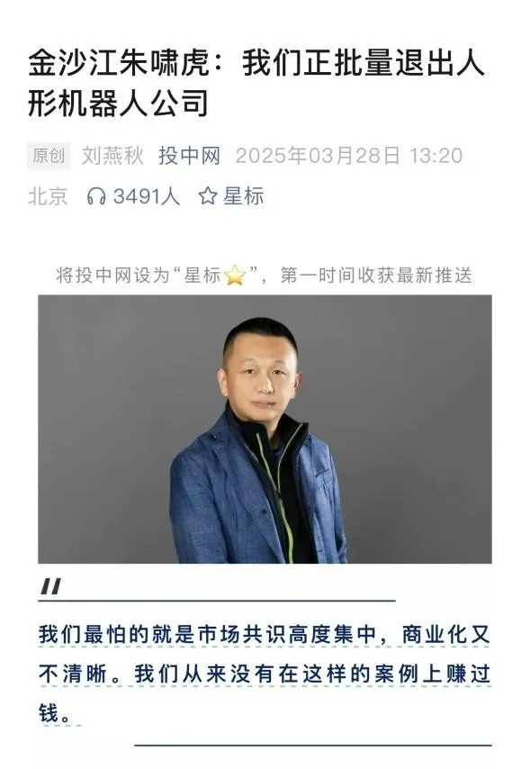 这一言论遭到经纬创投创始人张颖的公开反驳,后者在朋友圈喊话“朱老板别闹”,并表态称“时间拉长,人形机器人赛道一定能出大公司”。