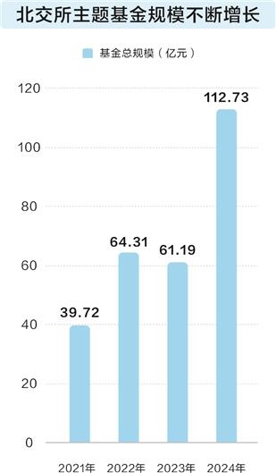 截至2024年12月31日,北交所主题基金合计规模达到112.73亿元,较首批基金初始规模增长超180%。北交所主题基金规模在2024年下半年增长迅速,合计增加超60亿元,实现翻倍。