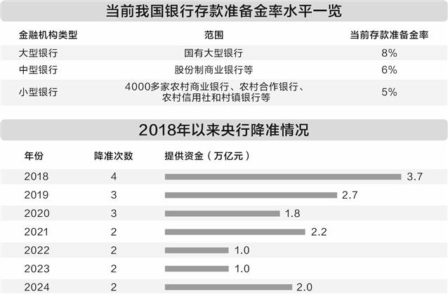 目前,我国法定存款准备金率包括大、中、小型银行三档,分别为8%、6%和5%,平均存款准备金率为6.6%。其中,小型银行的存款准备金率在2021年已降至5%,此后历次降准小型银行存款准备金率均未调整,因此也被外界解读为“5%是我国法定存款准备金率的隐形下限”。