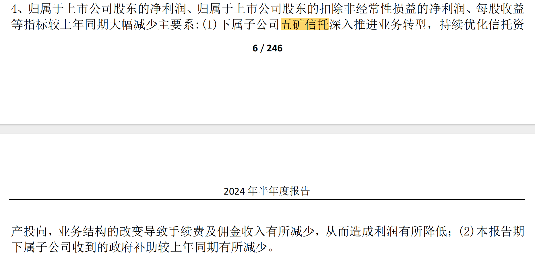 在五矿资本2024年半年报中,对于净利大幅下降,公司就曾指出与五矿信托有关,“下属子公司五矿信托深入推进业务转型,持续优化信托资产投向,业务结构的改变导致手续费及佣金收入有所减少,从而造成利润有所降低。”