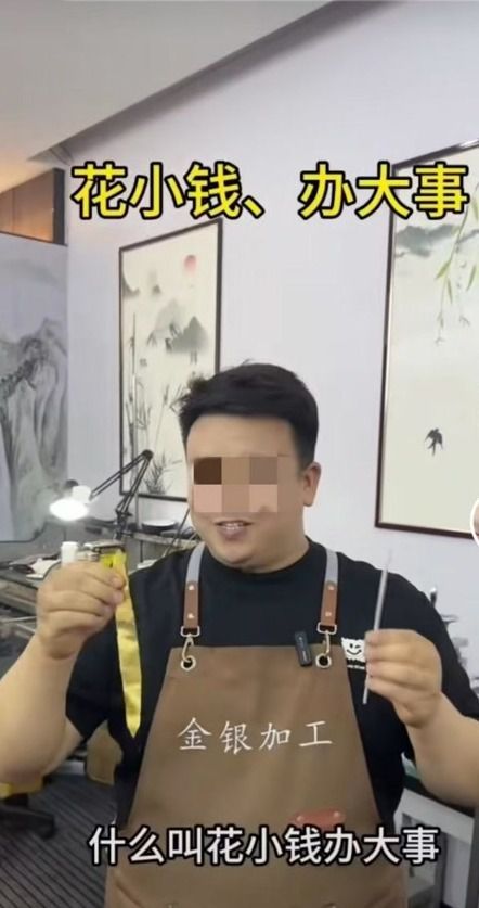“今天带大家看一下金包银的手工制作过程。”在短视频平台上,一名金工师傅展示完手中细长的银坯,又拿出一片扁平的金皮,小心翼翼地用金皮包裹住银坯,修剪后进行焊接、整圆,再根据需要打磨、抛光,一只金光闪闪的素圈手镯就制作完成。“花小钱,办大事,办出一样的效果。”