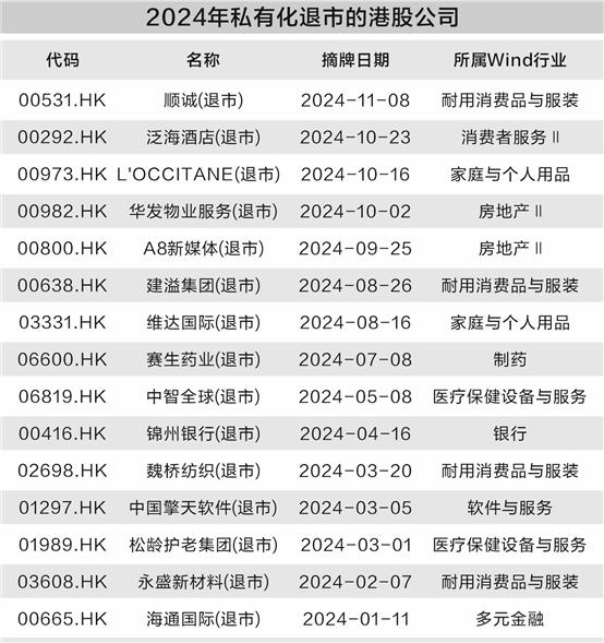 在海通国际、锦州银行、维达国际等港股公司相继因私有化退市之后,临近2024年底时又有一批公司官宣私有化计划,席卷了众多行业,当中不乏复星旅游文化、首创钜大、金利来等曾经声名远扬的明星企业。