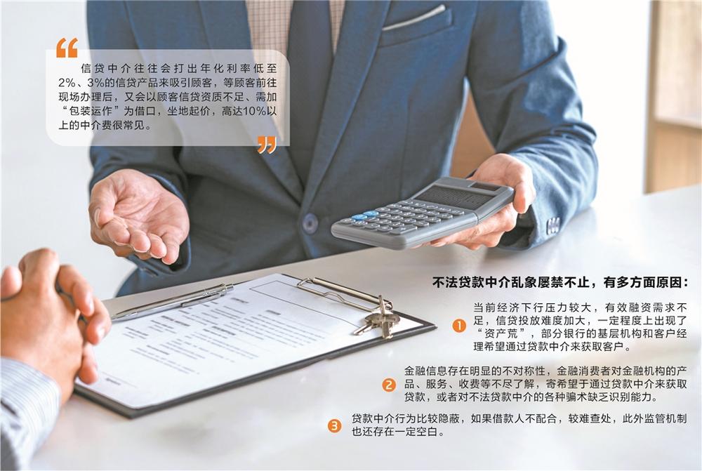 董希淼认为,一是当前经济下行压力较大,有效融资需求不足,信贷投放难度加大,一定程度上出现了“资产荒”,部分银行的基层机构和客户经理希望通过贷款中介来获取客户;二是金融信息存在明显的不对称性,金融消费者对金融机构的产品、服务、收费等不尽了解,寄希望于通过贷款中介来获取贷款,或者对不法贷款中介的各种骗术缺乏识别能力;三是贷款中介行为比较隐蔽,如果借款人不配合,较难查处,此外监管机制也还存在一定空白。