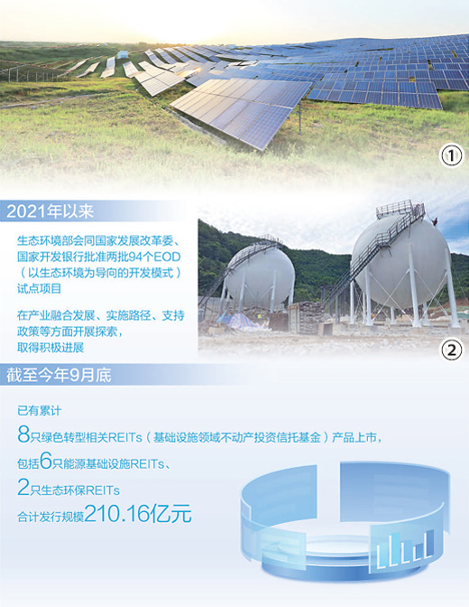 《意见》提出,支持符合条件的新能源、生态环境保护等绿色转型相关项目发行基础设施领域不动产投资信托基金(REITs)。今年8月1日,基础设施领域REITs项目正式由试点转入常态化发行,为绿色转型相关基础设施项目进入资本市场提供更多机遇。截至9月底,已有累计8只绿色转型相关REITs产品上市,包括6只能源基础设施REITs、2只生态环保REITs,合计发行规模210.16亿元。