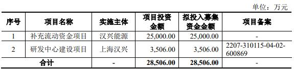 汉兴能源原拟在深交所创业板公开发行股票数量不超过3,600万股,原拟募集资金28,506.00万元,计划用于补充流动资金项目、研发中心建设项目。