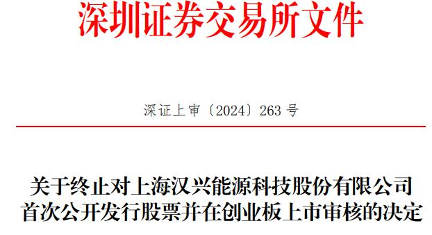 中国经济网北京9月30日讯 深交所网站日前公布关于终止对上海汉兴能源科技股份有限公司(简称“汉兴能源”)首次公开发行股票并在创业板上市审核的决定。