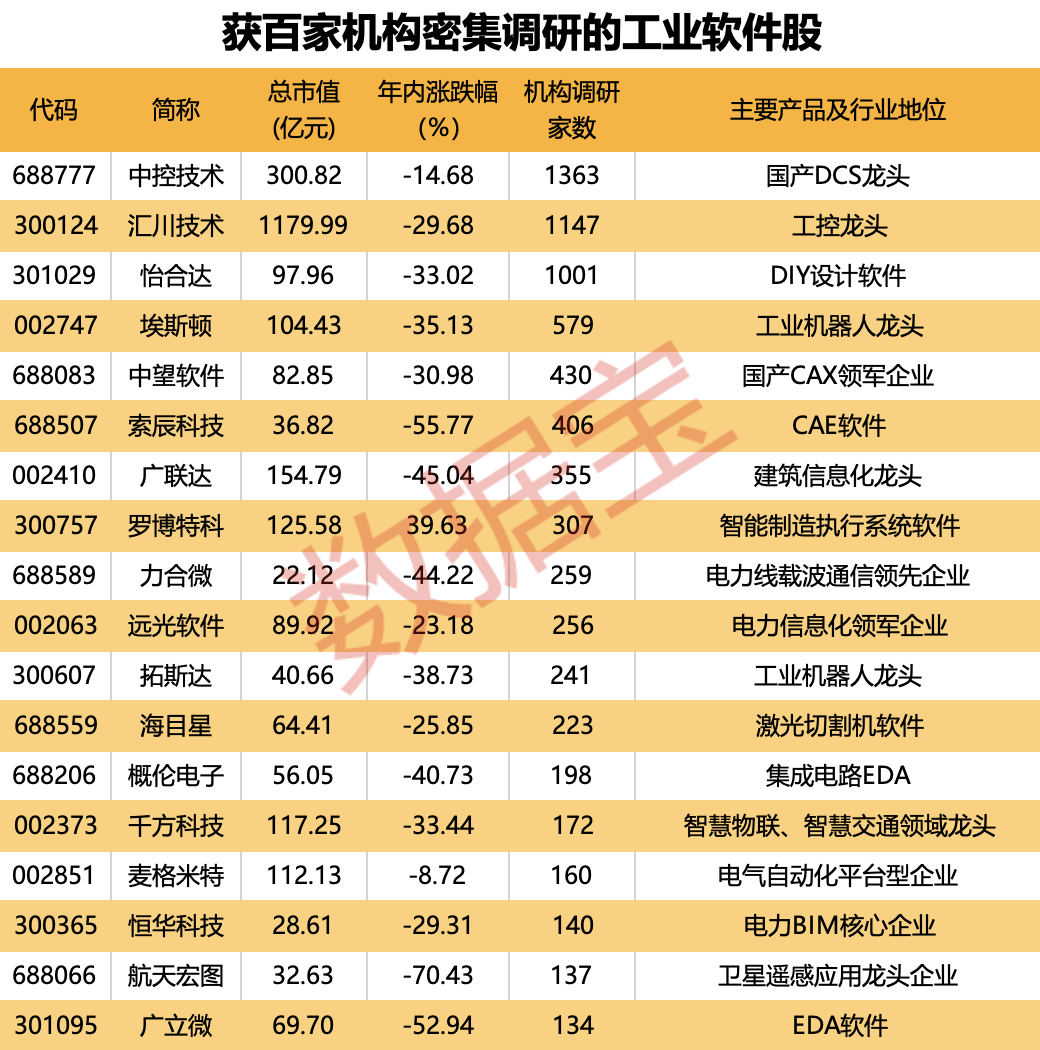 据证券时报·数据宝统计,A股上市公司中,有近50家上市公司具备工业软件概念。