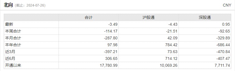 数据显示,北向资金周五净卖出3.49亿元。本周,北向资金整体净流出114.17亿元。