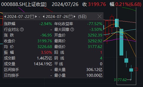 截至周五(7月26日),其收盘点位为3199.76,周跌幅为2.94%,略优于上证指数本周表现(-3.07%)。这也意味着,周一早上,该指数的开盘点位应该在3200点上下。