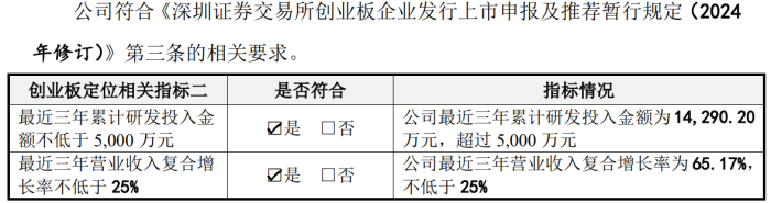 据此,该公司认为,其符合《深圳证券交易所创业板企业发行上市申报及推荐暂行规定(2024年修订)》相关要求。