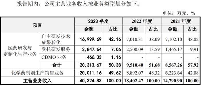 报告期内,公司主营业务毛利率分别为81.79%、83.63%和89.71%,其中医药研发与定制化生产业务毛利率为81.60%、90.58%和91.50%,化学药制剂生产销售业务毛利率为82.05%、76.2%和87.9%。