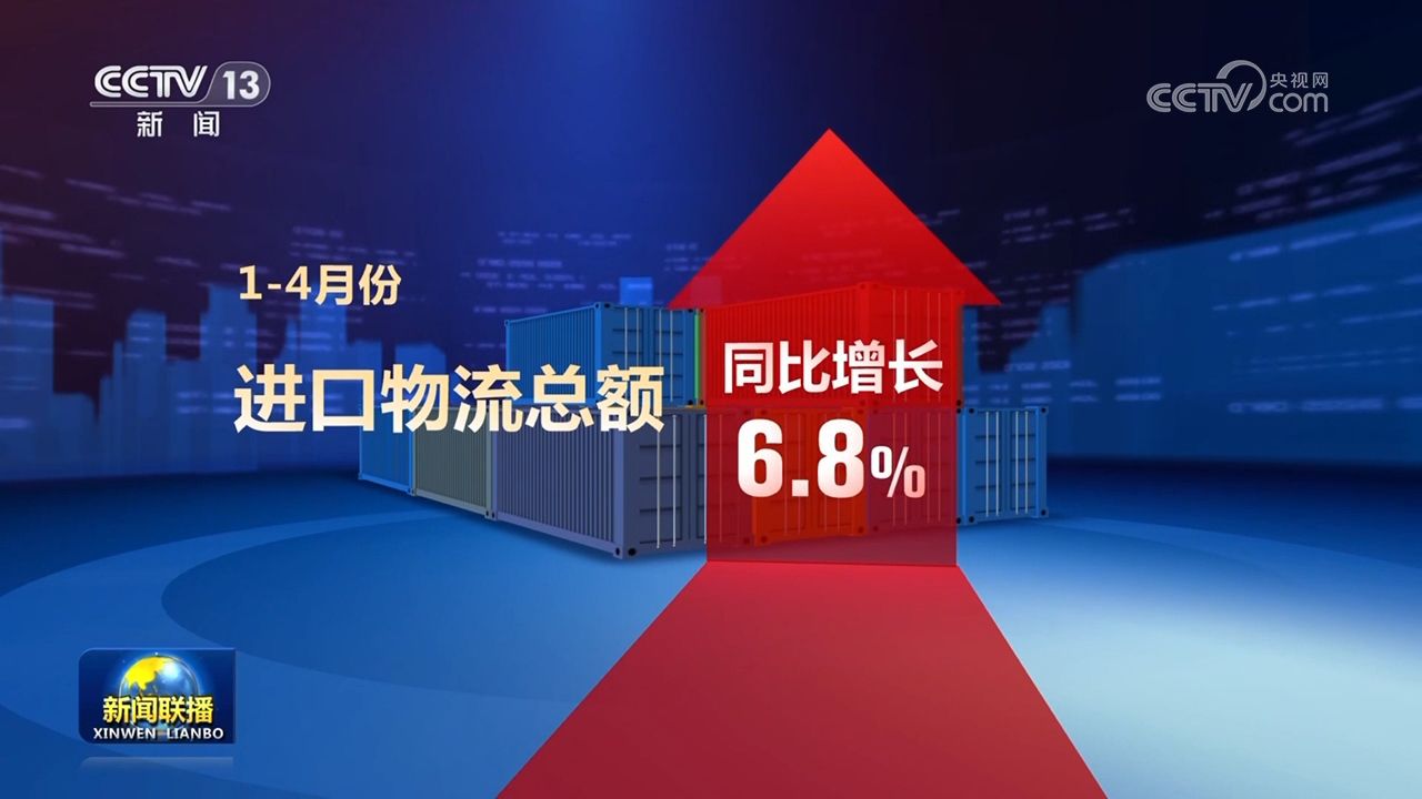 从进口物流来看,1—4月份,进口物流总额同比增长6.8%。4月份进口物流量增速由负转正,回升幅度明显。4月份国际航空货邮运输同比增长超过30%,航空货运助力物流国际化步伐不断加快。