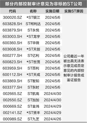 此外,另有17家公司因内控审计意见为非标被实施ST。