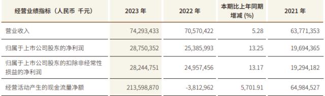 年报显示,2023年,江苏银行实现营业收入742.93亿元,同比增长5.28%;实现归母净利润287.5亿元,同比增长13.25%。