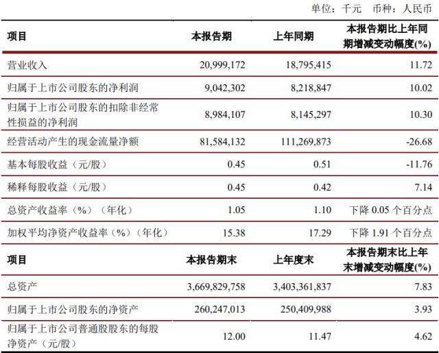 江苏银行4月25日晚披露的2024年第一季度报告(下称“报告”)显示,2024年一季度,江苏银行实现营业收入209.99亿元,同比增长11.72%;实现归母净利润90.42亿元,同比增长10.02%。截至2024年3月末,江苏银行总资产36698.3亿元。