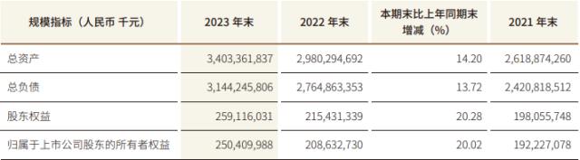 资产负债方面,年报披露,截至2023年末,江苏银行总资产34033.62亿元,同比增长14.2%;总负债31442.46亿元,同比增长13.72%。