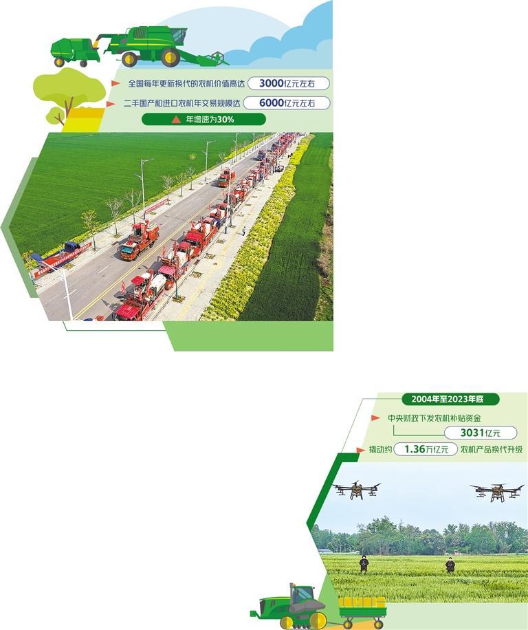 农机以旧换新会刺激资本进入农机再制造行业。“我国拥有包括动力、耕整、播种、植保、收获、秸秆处理、烘干等在内的万亿元级别的各种农机具,为大规模农机装备更新提供了丰富资源。”范建华表示,农机以旧换新必将吸引更多资本加入这一行业,为农机装备以旧换新形成高质量发展的产业链提供保障,进一步刺激农机投资,为农机市场注入新动能。