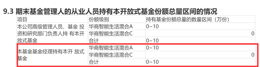 例如,自2022年下半年起,知名基金经理高兵就已经在逐步减持其管理的华商智能生活。截至2022年年中,他持有该产品的份额还有50万份-100万份,2022年底仅剩0-10万份。到了2023年中报和年报,他彻底清仓了这只产品,持有份额为零。