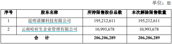 此次解禁的股东共两位,分别为第一大股东昆明诺娜科技有限公司和第四大股东云南哈祈生企业管理有限公司。不论此次解禁的大股东是否有意减持,此前还未完成清仓的股东们的态度依然是投资者的顾虑之处。