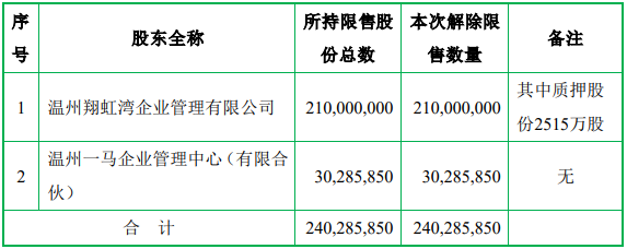 苏能股份本次限售股解禁明细