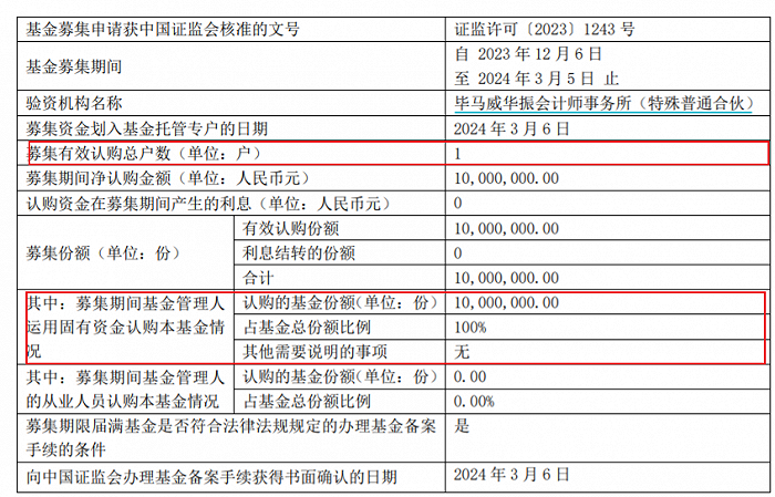 除了国寿安保高端装备外,3月7日刚成立的兴银创盈一年定开发起式基金,在经历了三个月的顶格发行期后,仅有管理人兴银基金认购1000万元,员工和外部投资者都没参与认购。