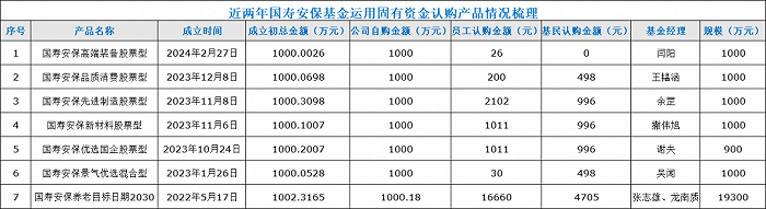 一个典型的案例是,2022年5月17日成立的国寿安保养老目标日期2030混合型发起式,成立之初产品规模1002.32万元,基金公司自购1000.18万元,员工认购1.67万元,基民认购4705元。该基金经理为张志雄和龙南质共同管理,截至2023年12月末,该产品规模升至1.93亿元。