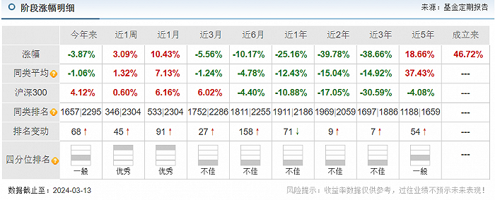 但将时间线拉长,近6个月、1年、2年、3年该产品排名均不理想。