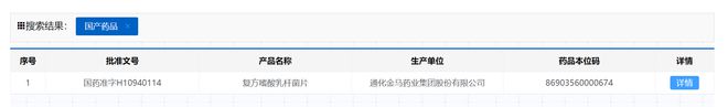 据通化金马年报披露,复方嗜酸乳杆菌片是企业的主导产品,具有调节肠道菌群、改善人体机能的作用。若是在国家药监局官网搜索“复方嗜酸乳杆菌片”,也仅有通化金马一家具有药品批准文号。