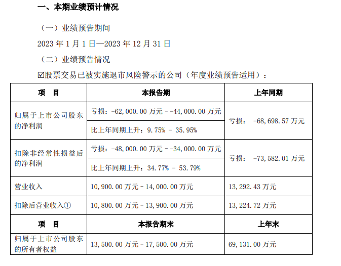 *ST美尚日前发布业绩预告披露,预计2023年归属于上市公司股东的净利润亏损4.4亿元~6.2亿元。