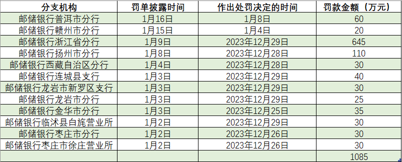 值得一提的是,邮储银行近期还有多家分支机构领到监管罚单。