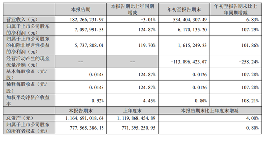 根据公司财报,2023年前三季度,金力泰营业收入为5.34亿元,同比增长6.83%;归母净利润为617万元,同比增长107.29%。