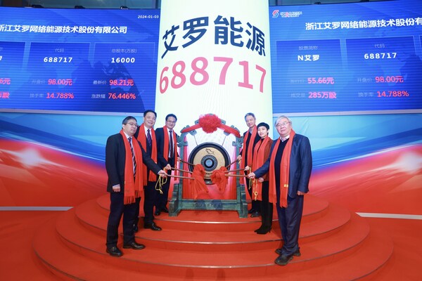 2024年1月3日,浙江艾罗网络能源技术股份有限公司(股票简称:艾罗能源,股票代码:688717)在上海证券交易所科创板正式挂牌上市。本次公开发行股票4000万股,发行价格为55.66 元/股。
