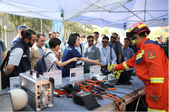 装备技术交流环节,对个人防护、侦检探测、破拆支护、水域救援、机器人侦查灭火类等多个领域的装备进行展示,机器人、无人机、涡喷消防炮、水陆两栖车等先进装备在联合演练中进行了应用,进一步加深学员们对装备性能的了解和操作技能的掌握,实现了装备技术交流的目标。