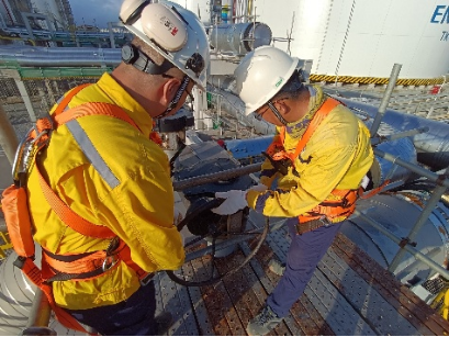 安全质量严苛管控铸就 “精品工程”,项目以 “零安全事故、全优质量” 交出亮眼答卷。建设期间,安全工时累计达514万小时,重大事故率为零,创下大型能源工程安全管理佳绩。质量管理方面,桩基检测I类桩占比达 99.15%,内罐9镍钢焊接一次合规率 99.08%;管道焊接一次合格率 99.12%,均以高标准完成各关键工序。从基础施工到核心设备焊接,严苛的过程管控确保每一道工序都成为储罐建设的“样板工程”。
