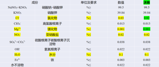 ※标准化学性质规格表【级别:按照GB/T36376-2018太阳能熔盐规定的Ⅰ类一等品】
