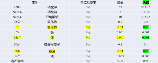 ※标准化学性质规格表【级别:按照GB/T36376-2018太阳能熔盐规定的Ⅱ类一等品】