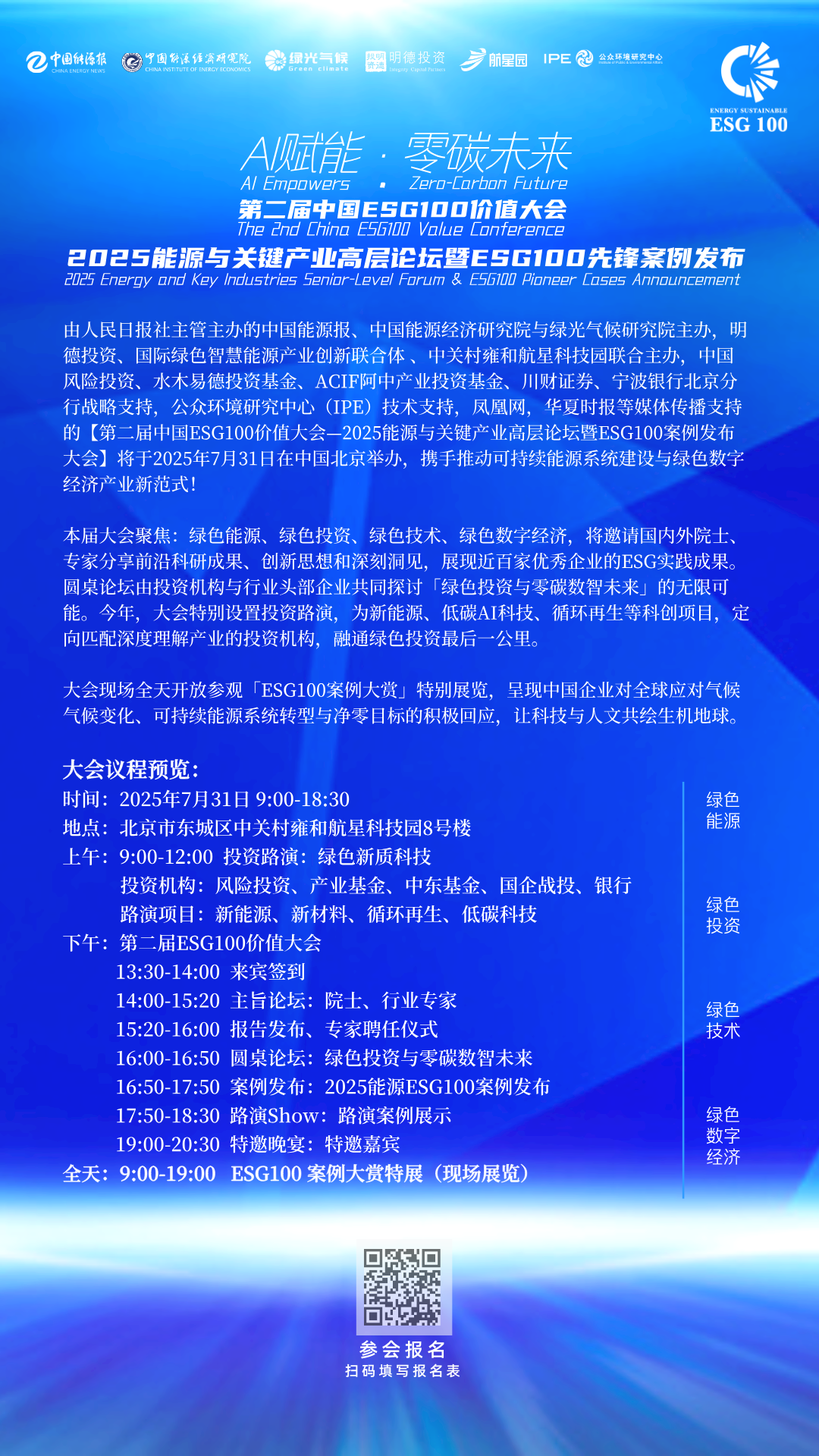 参展报名:人民日报社|第二届ESG100价值大会——2025能源与关键产业高端论坛暨2025ESG100案例发布