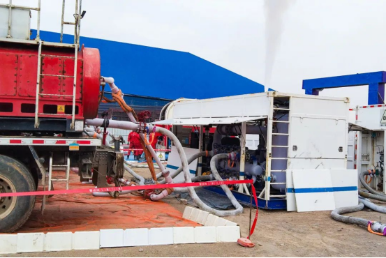 该技术融合多项创新工艺,通过精确水平井井眼轨迹控制技术+电动坐封可溶桥塞分段压裂,实现目标区域、目标层位的精准改造,形成三维立体、纵横交错的复杂改造缝网,大幅提升瓦斯抽采效率。在二、三盘区,项目组分别设计了一组U型对结井,各完成12段压裂作业。针对目标层位埋深浅、地层能量不足等特殊地质条件,创新性开展二氧化碳前置增能试验,系统评估不同压裂液体系的适用性,不仅有效提高瓦斯抽采效果,还减少了传统压裂液对地下水资源的潜在污染。
