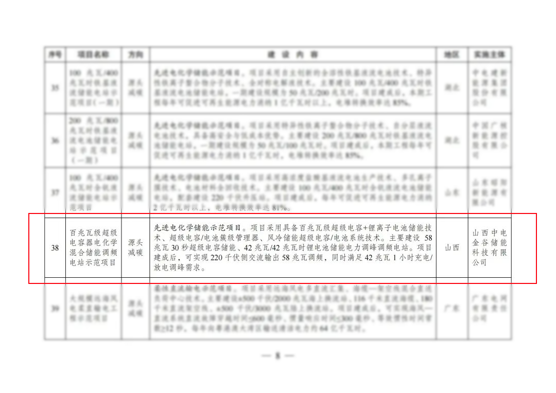 项目名称:山西百兆瓦级超级电容器电化学混合储能调频电站示范项目