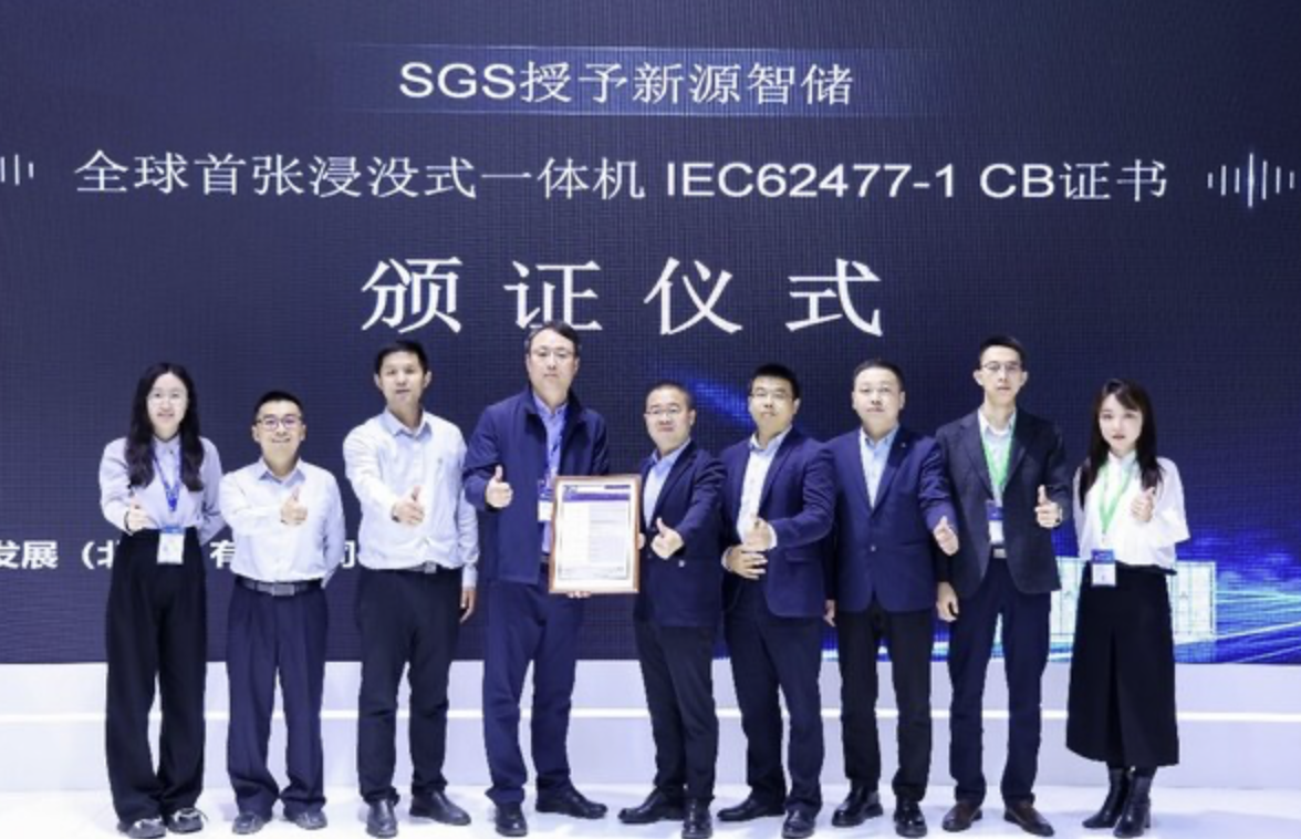 SGS授予新源智储超分子全浸没式工商储一体机IEC/EN 62477-1:2022证书